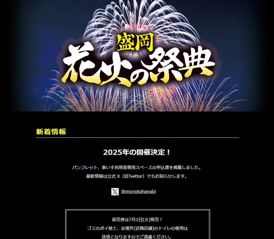 — 盛岡花火の祭典【公式】 (@moriokahanabi) June 30, 2025