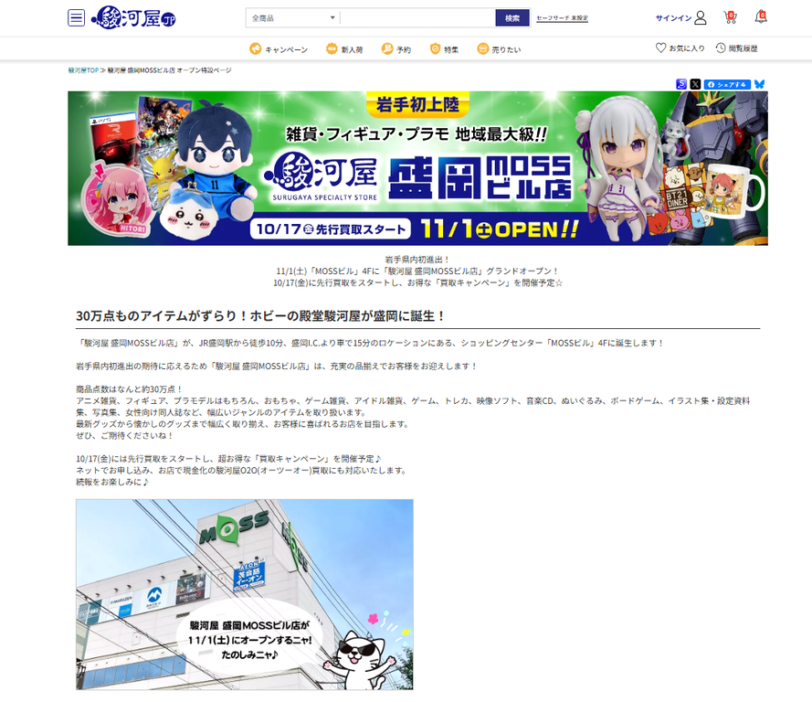 【11月1日グランドオープン】駿河屋 盛岡MOSSビル店【岩手県に「ホビーの殿堂」が遂に上陸】