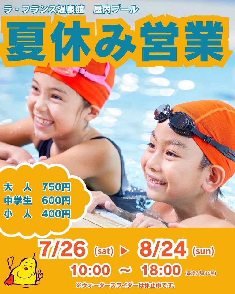 【2025年 夏休み営業】ラ・フランス温泉館の屋内プールが始まるよ~、という話