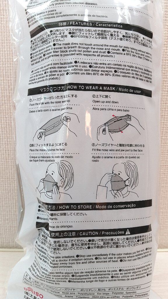 以前「ダイソー3Dマスク(韓国マスク)7枚入り100円」で3Dマスクデビューしたのですが、20枚なので買ってみました![]()