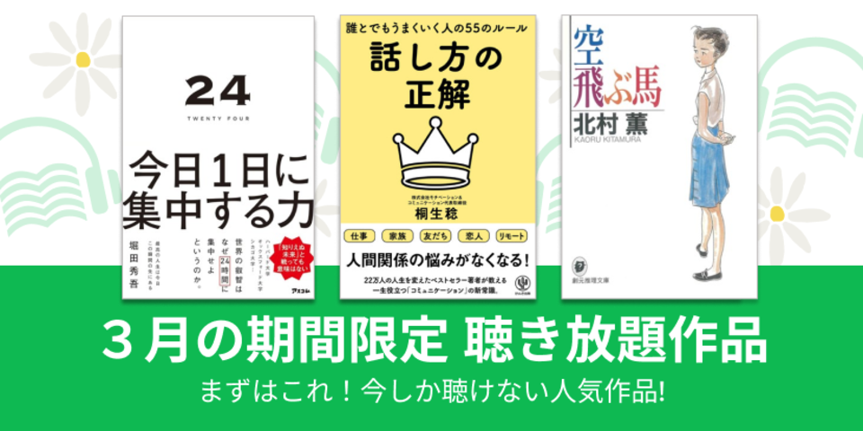 では、オーディオブック「3月限定聴き放題」3作品は…